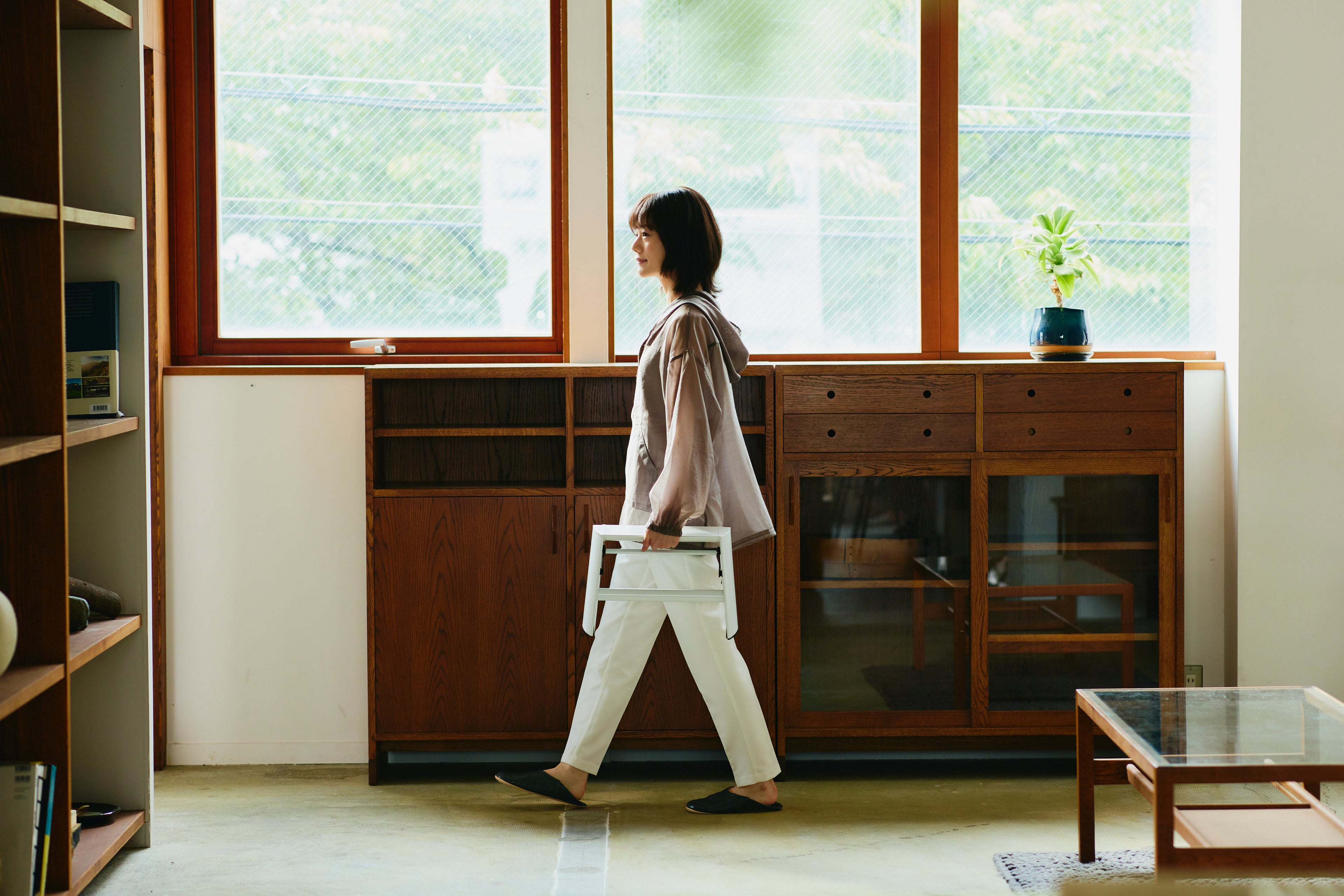 ただ、いかにも“作業用”なシルバーとグリーンの脚立を部屋には置きたくない。