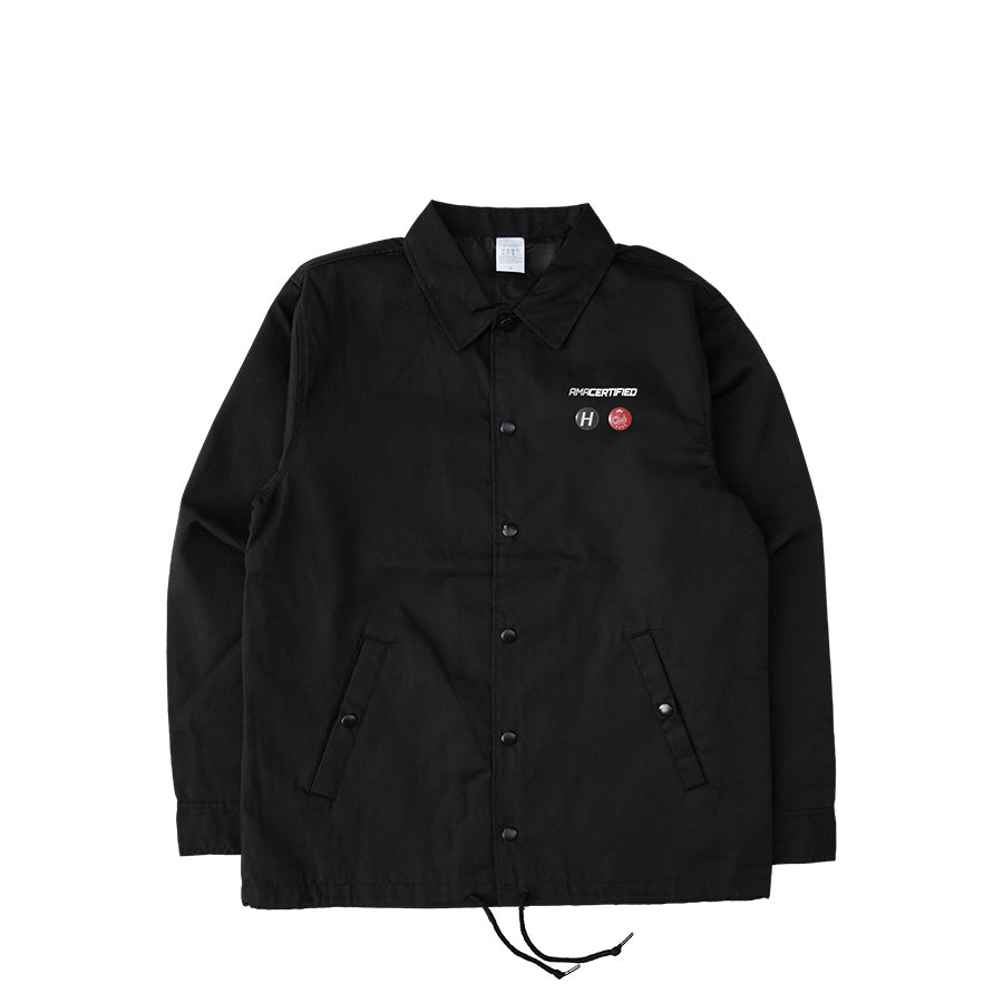 フロントにはAMA CERTIFIEDロゴとHASEGAWAのHロゴとCLUBHAUSの缶バッジが。 同時発売のフーディとのコーディネートをお勧めします! コーチジャケットは少しサイズ大きめですので、ワンサイズ下げてもいいと思います。