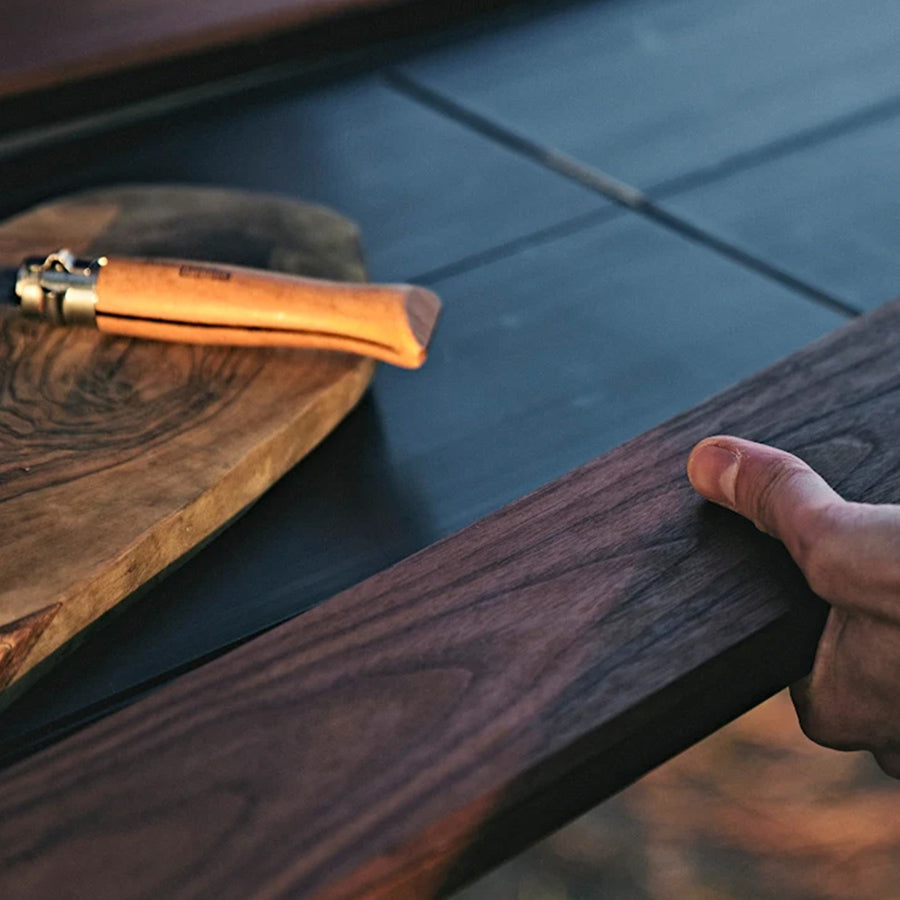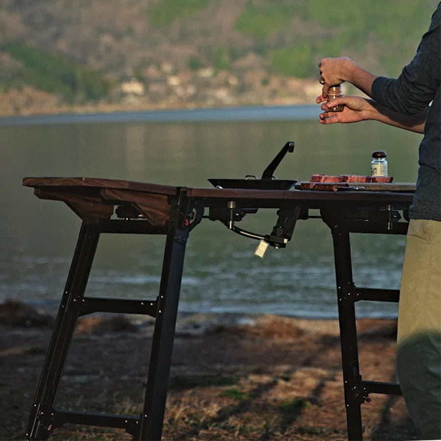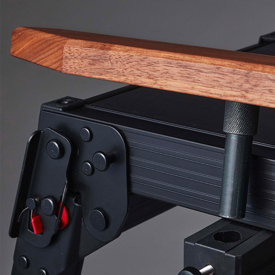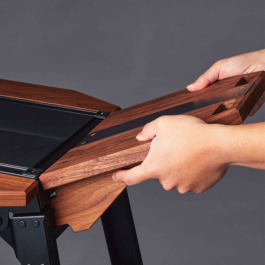 天板サイズ30cm x 100cm のハセガワの足場台に装着可能な木製の拡張テーブルセット。アルミグリルテーブルに装着すると作業スペースが格段に広がり、調理時やコーヒースタンドとしても活躍間違いなし。