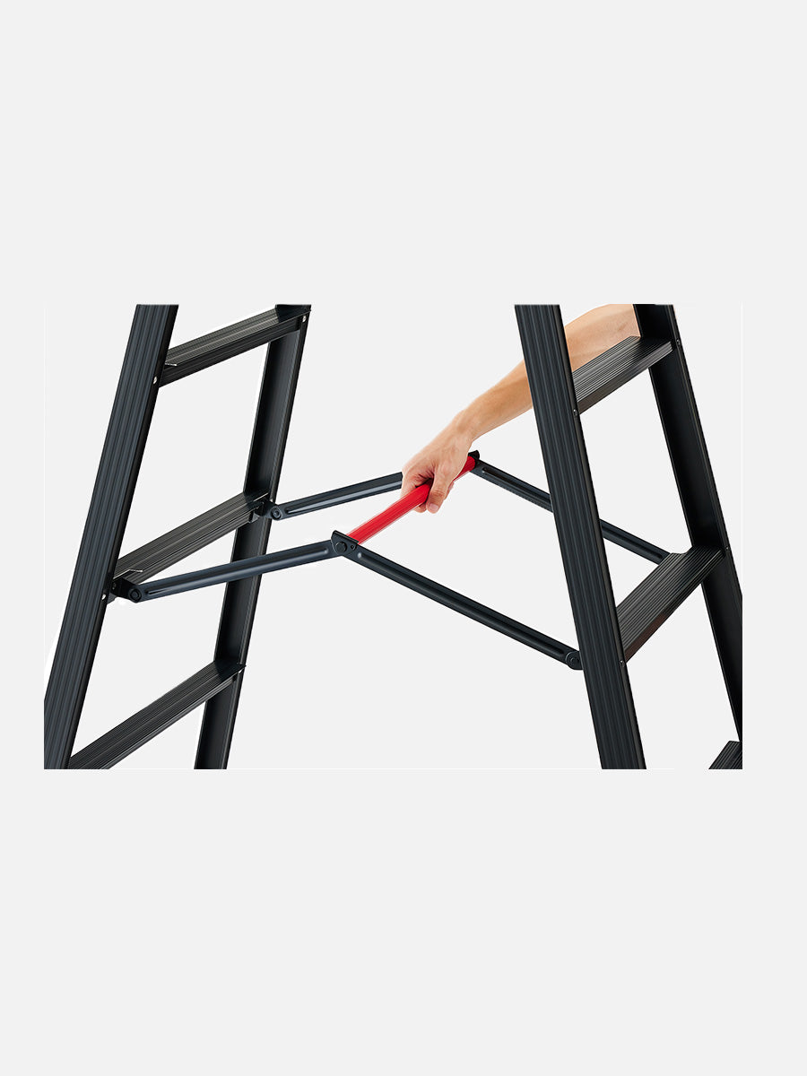 また、アルミ製でとても軽く、持ち運びも簡単。使用時の安定感も抜群で、安全性にも配慮されていると感じます。ステップの幅や角度も登りやすく、見た目だけでなく機能性も文句なし。使わないときも折りたたまずそのまま置いておけるくらい、デザインに満足しています。